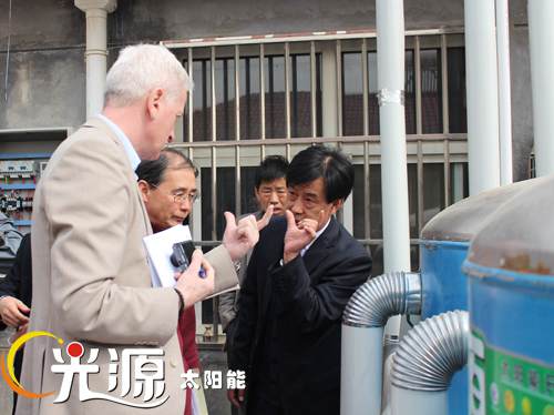識(shí)別團(tuán)一行在河北省發(fā)改委外資處副處長(zhǎng)史海峰、河北省財(cái)政廳涉外處副處長(zhǎng)何貴滿、河北省新能源技術(shù)推廣站副主任王香雪及市直有關(guān)部門負(fù)責(zé)人的陪同下實(shí)地考察了光源公司威縣農(nóng)村太陽(yáng)能熱利用及生物質(zhì)燃料項(xiàng)目。通過考察了解了太陽(yáng)能采暖、太陽(yáng)能熱開水系統(tǒng)的工作原理、項(xiàng)目周邊環(huán)境及使用情況,并對(duì)項(xiàng)目的具體情況展開了座談?dòng)懻?。光源公司副總?jīng)理邵東坤就光源公司的基本概況、經(jīng)營(yíng)情況以及世行貸款項(xiàng)目概況向識(shí)別團(tuán)進(jìn)行了匯報(bào),識(shí)別團(tuán)針對(duì)項(xiàng)目的建設(shè)內(nèi)容、開發(fā)潛力、市場(chǎng)風(fēng)險(xiǎn)等問題進(jìn)行了提問和討論。