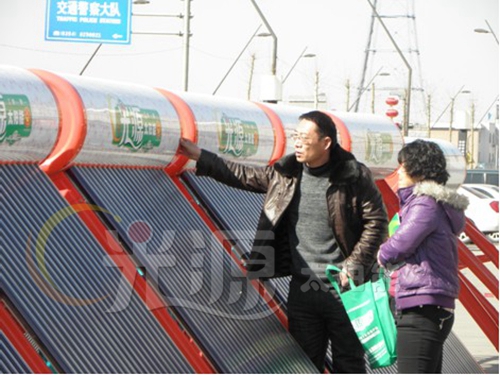 陽光明媚下的晉中是那么引人注目,60多臺光源太陽能在逸園大酒店廣場展現(xiàn)光源氣勢,引來了四面八方的新老客戶,現(xiàn)場新老朋友對光源產(chǎn)品質量表示了肯定,青花瓷的水箱,紫金波紋集熱真空管,讓新老朋友贊不絕口。
