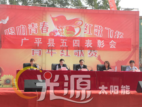 2011年5月4日,值此五四青年節(jié)到來之際,由邯鄲市廣平縣政府主辦,光源太陽能贊助的“光源杯”青年紅歌賽在廣平縣文化廣場隆重舉行!