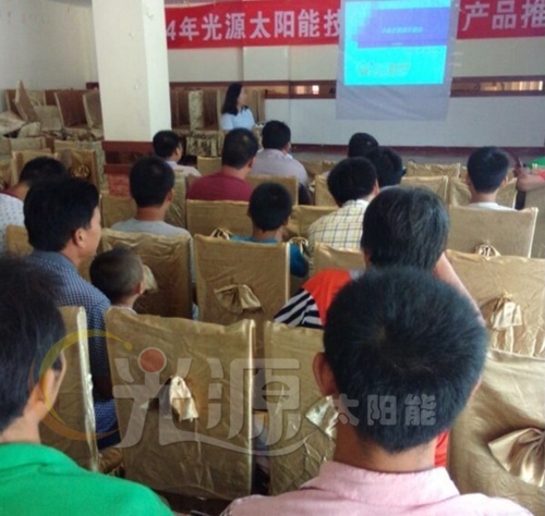 2014年8月20日河南夏邑縣光源太陽(yáng)能技術(shù)培訓(xùn)及產(chǎn)品推介會(huì)隆重召開(kāi)。本次會(huì)議圍繞“互聯(lián)網(wǎng)時(shí)代話光源招商之饑餓營(yíng)銷(xiāo)”為切入點(diǎn)進(jìn)行了為時(shí)90分鐘的培訓(xùn)。