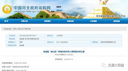 7月10日,河北臨城縣“電代煤”取暖設備采購入圍項目中標公告出爐,河北光源太陽能科技有限公司憑借強大的品牌實力、過硬的產品質量以及親民的售后服務榮登榜單。入圍產品為:八標段:蓄熱式電暖氣(液態(tài))。