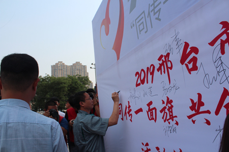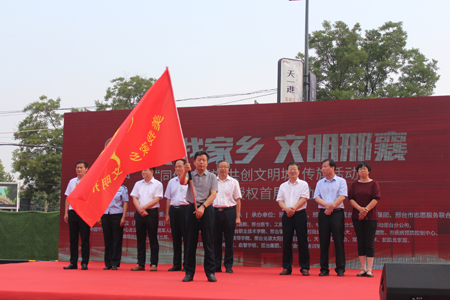 2019年6月17日上午,我公司與邢臺市各行業(yè)的30家代表單位共同參加了,由市宣傳部、文明辦舉辦的“同傳一面旗 共創(chuàng)文明城”傳旗活動暨手繪邢臺授權首展啟動儀式。