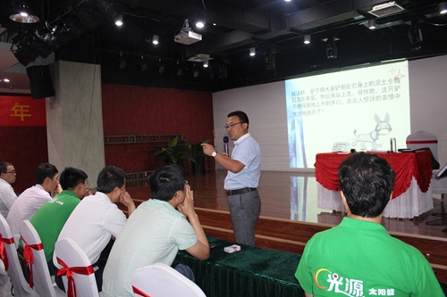6月份,光源太陽能科技有限公司舉辦的銷售培訓會,通過培訓會,不但可以加深業(yè)務人員對企業(yè)文化和產(chǎn)品的認識,而且能夠增強業(yè)務人員的專業(yè)知識及技能,更好的服務于客戶.